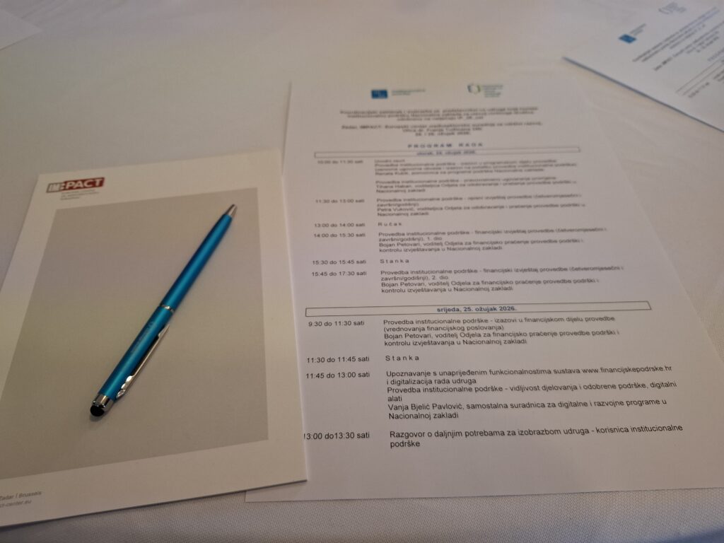 Poseban naglasak stavljen je na izvještavanje, pri čemu su nam predstavljene mogućnosti unapređenja sustava financijskih podrški, osobito u dijelu koji se odnosi na modul za izvještavanje. Navedene novosti značajno će doprinijeti jednostavnijem i učinkovitijem vođenju administrativnih procesa. Također su nam dodatno pojašnjene obveze vezane uz vidljivost djelovanja naše udruge i same institucionalne podrške. U tom kontekstu upoznati smo s digitalnim alatima koji nam mogu pomoći u kvalitetnijem informiranju javnosti o našim aktivnostima i rezultatima rada.